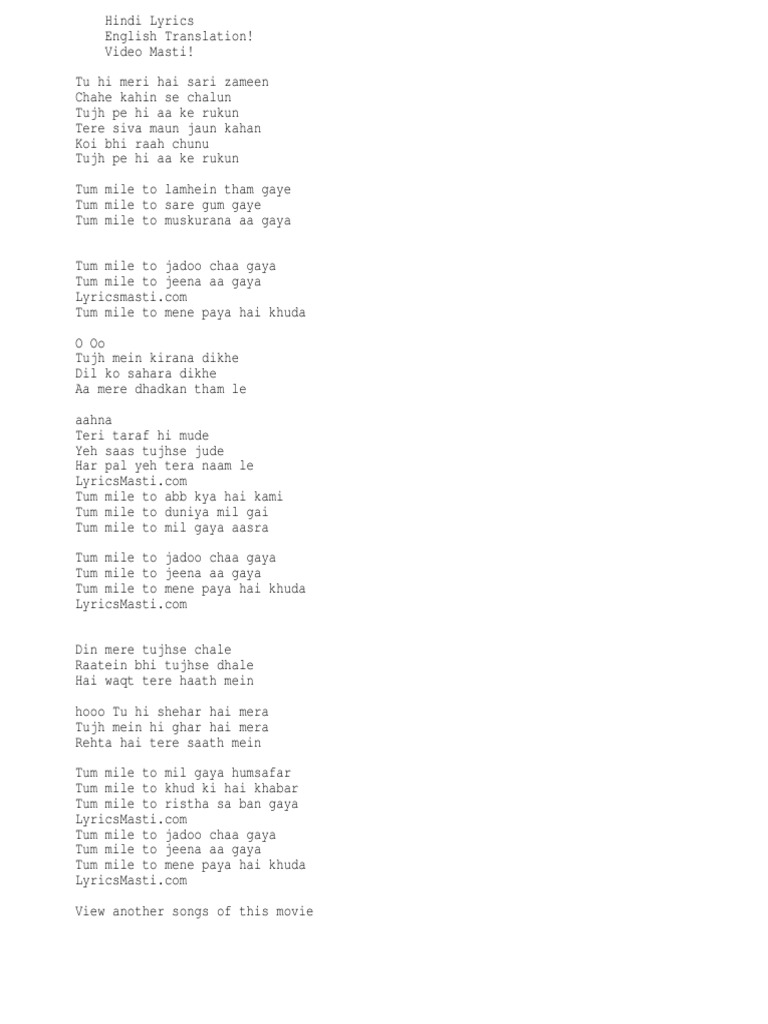 Tum Mile To Jeena Aa Gaya Song Download : The hindi song you are about to download is tum mile sung by neeraj shridhar and pritam chakraborty taken from the film tum mile.